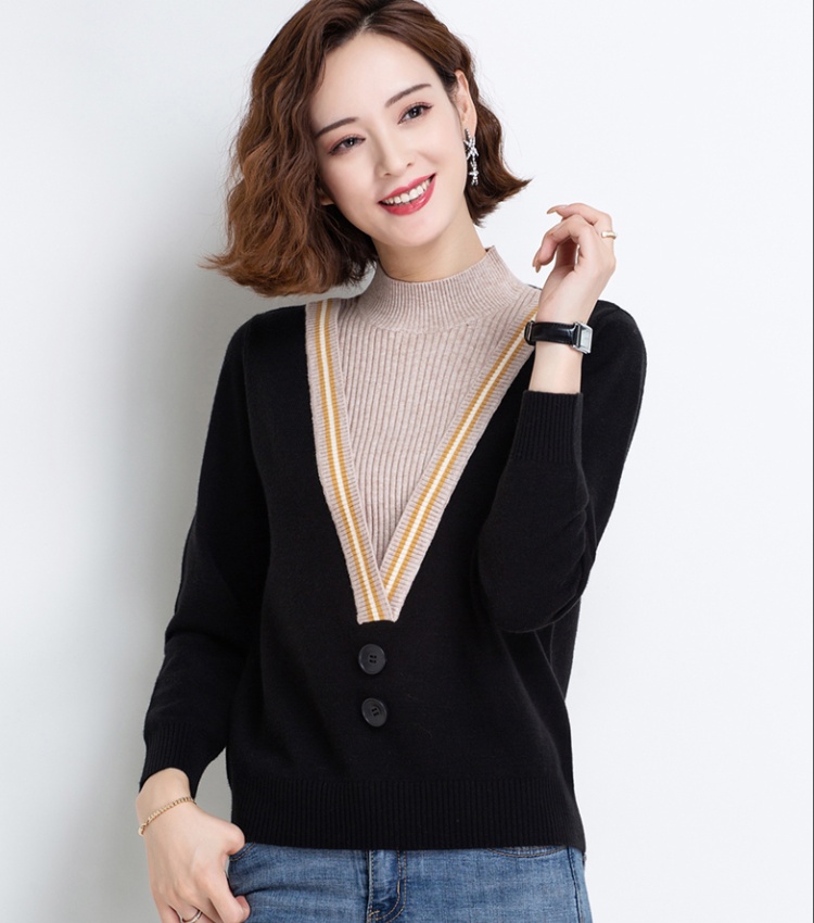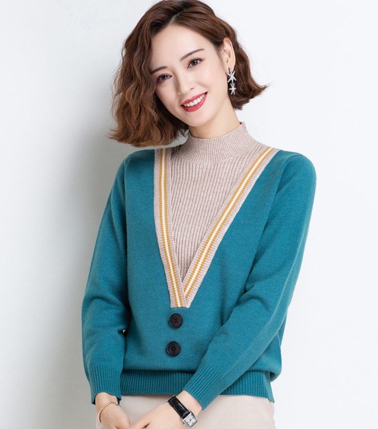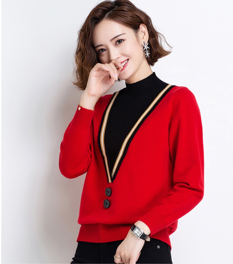 Red Pseudo-two bottoming shirt plus velvet sweater