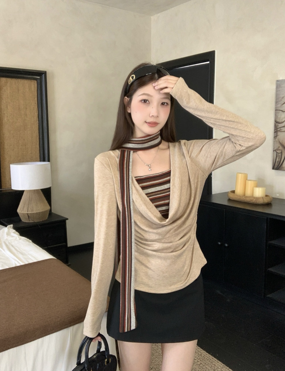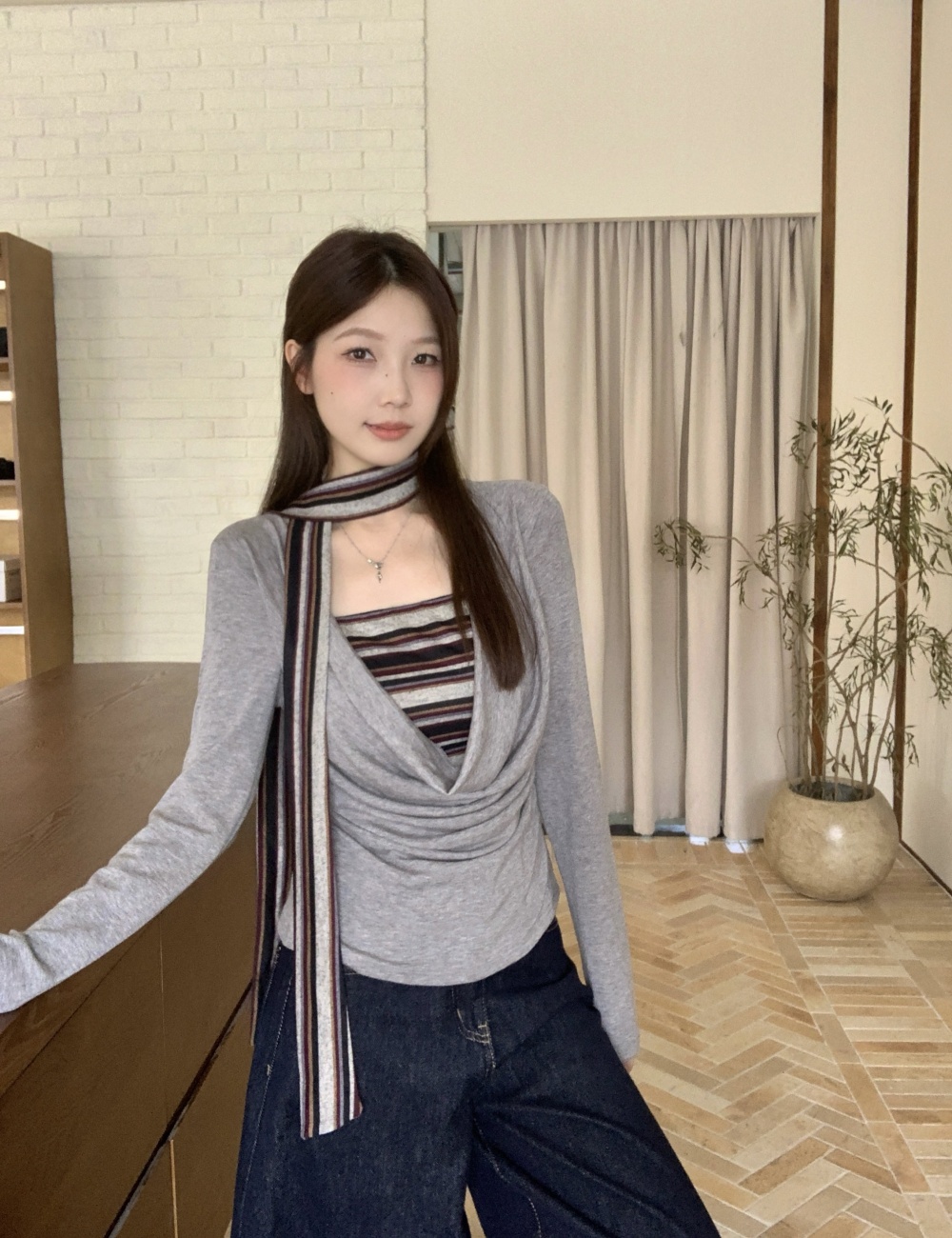 Sexy pink enticement split T-shirt irregular fold slim tops