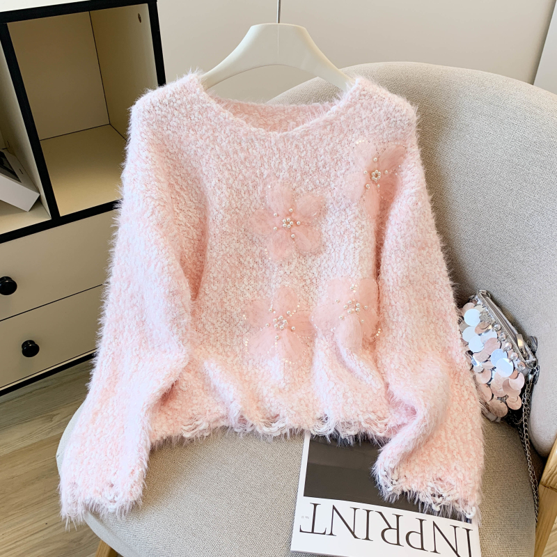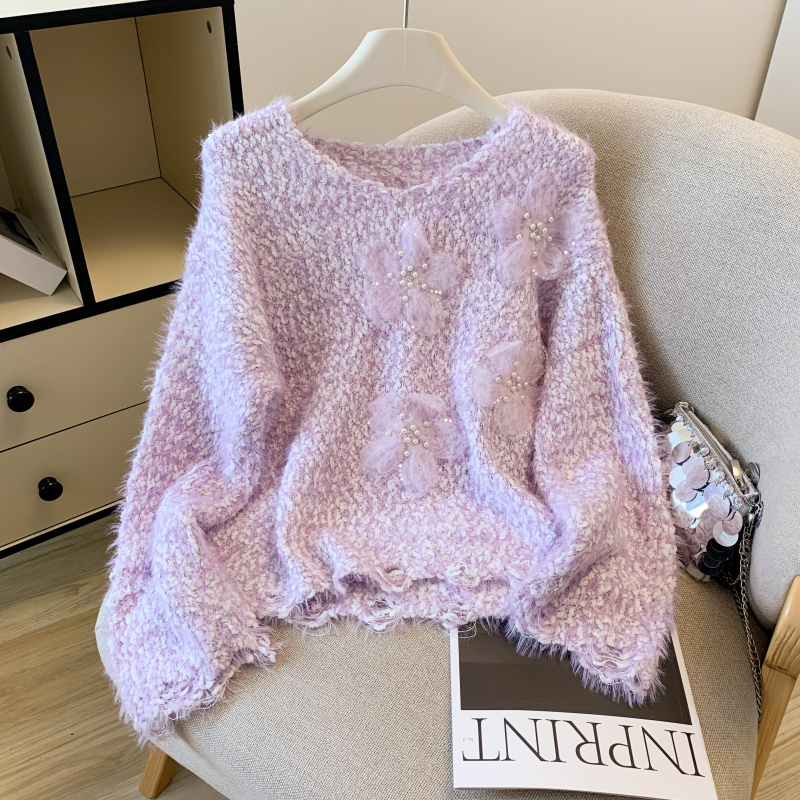 Fashion V-neck lazy Casual loose all-match pullover sweater