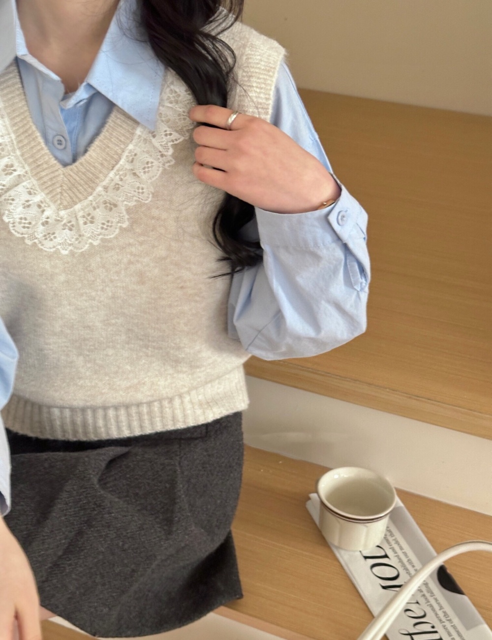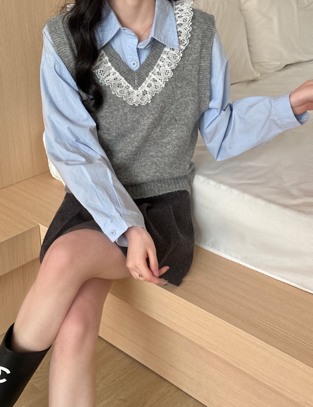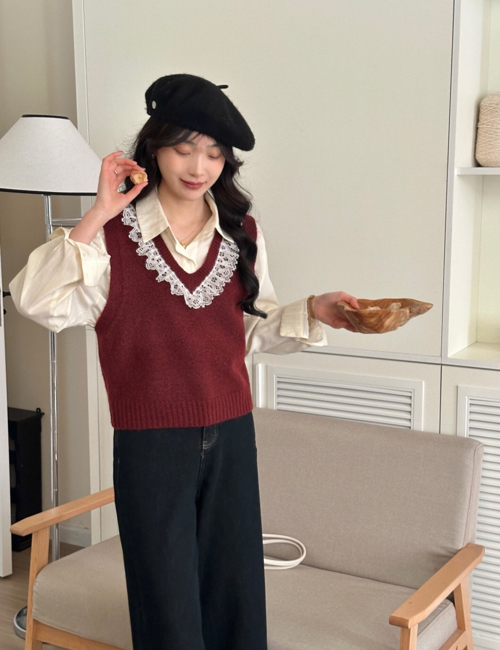 Knitted vest France style waistcoat for women