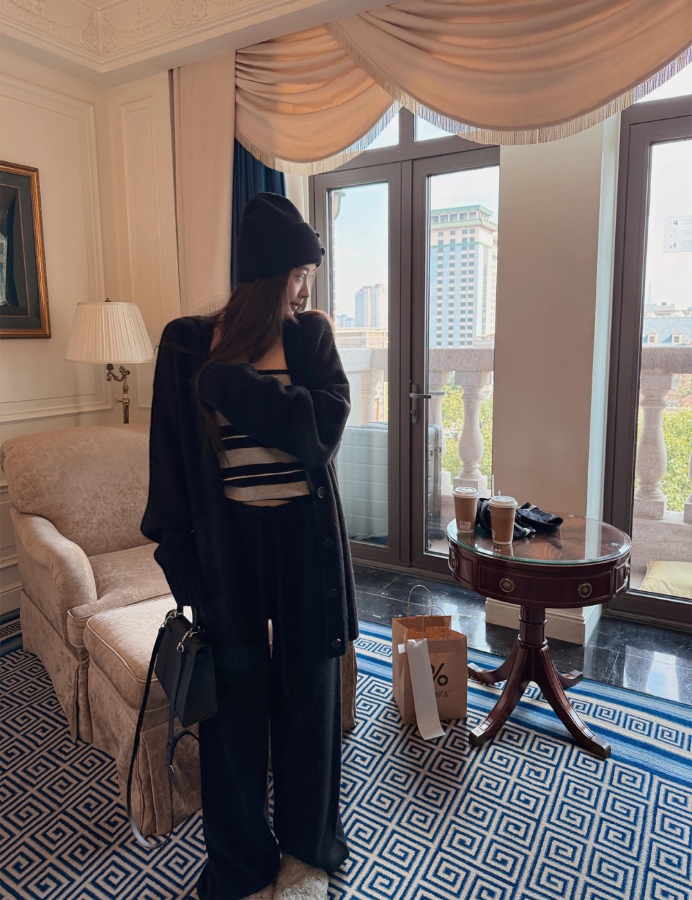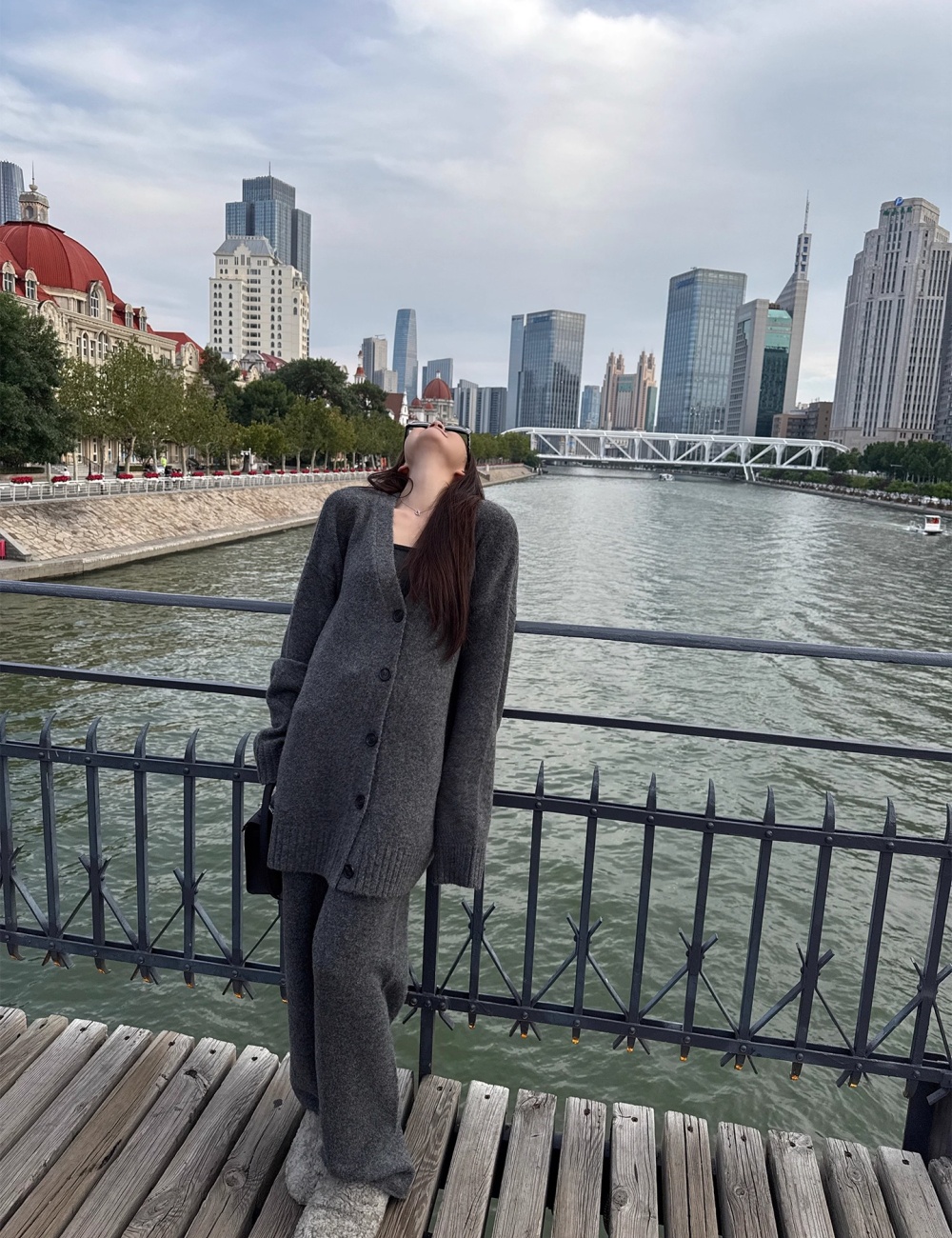 Show high long pants slim cardigan a set
