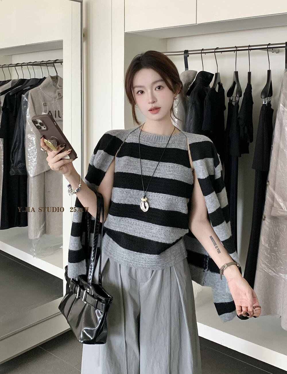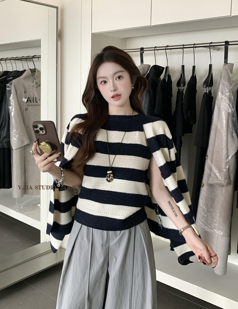 Knitted V-neck cardigan lotus leaf edges tops for women