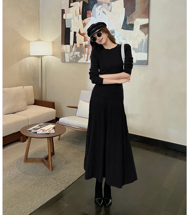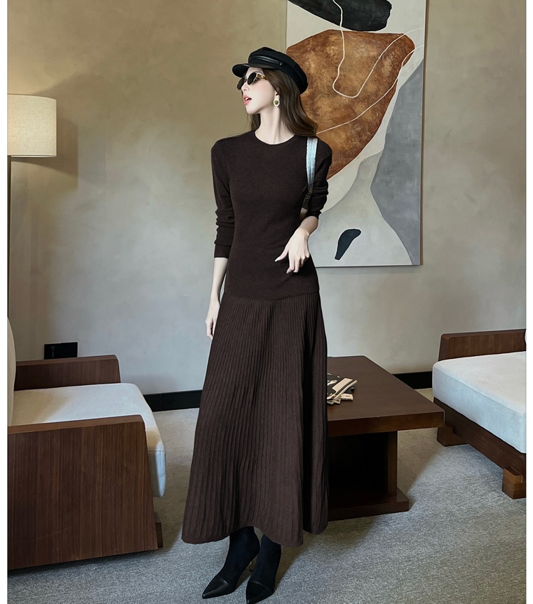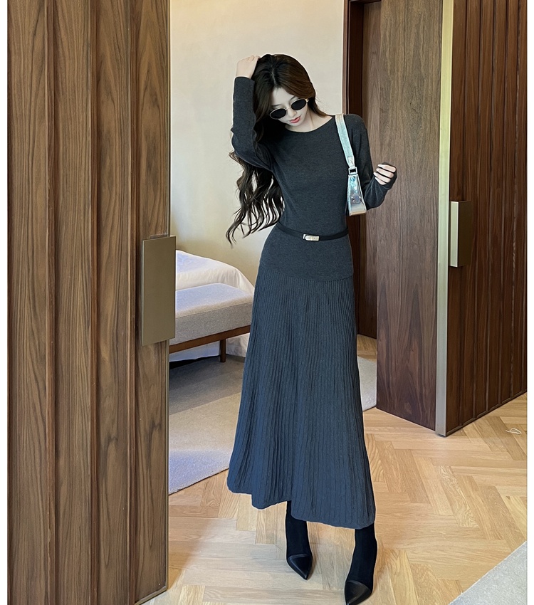 Simple knitted tops commuting skirt 2pcs set for women