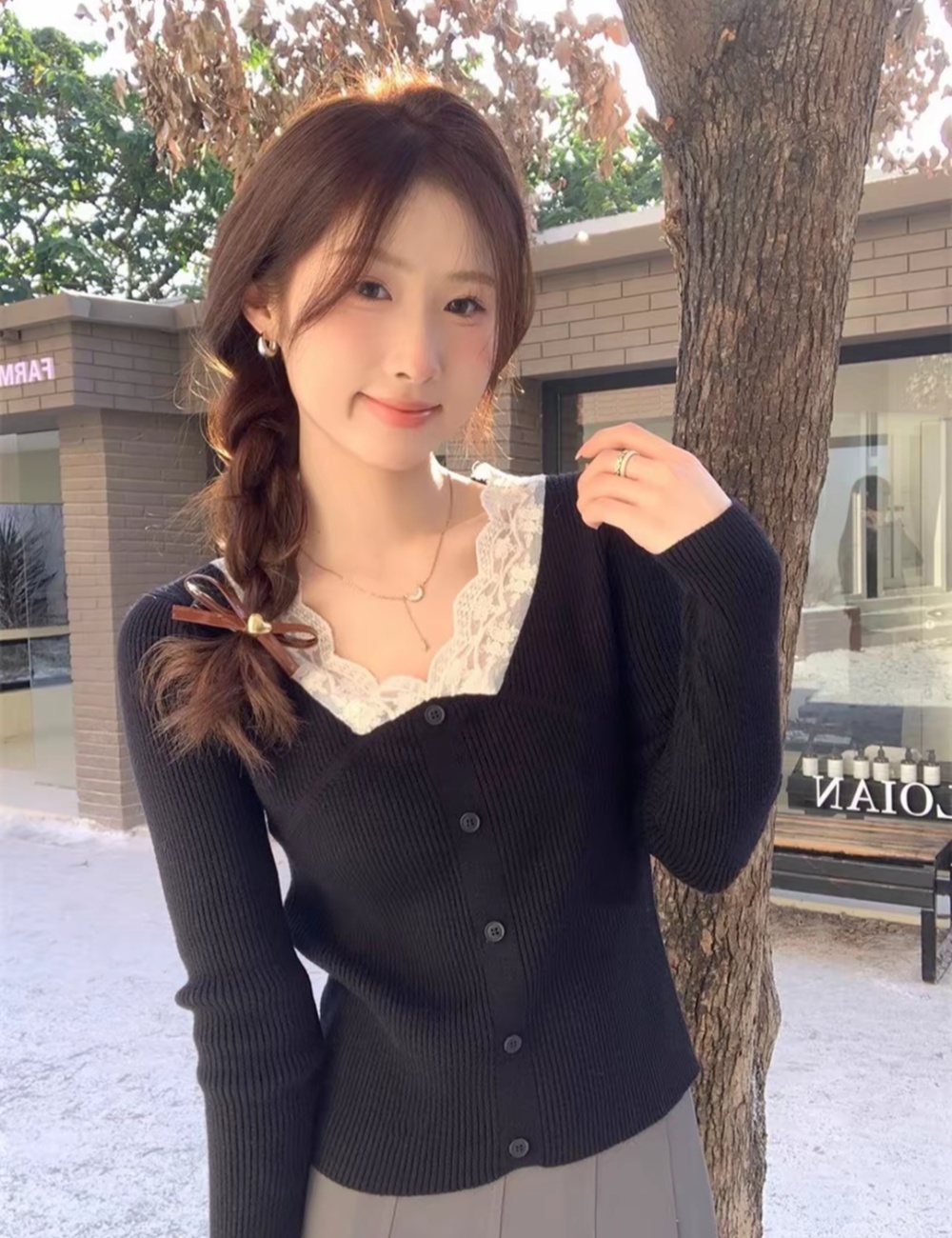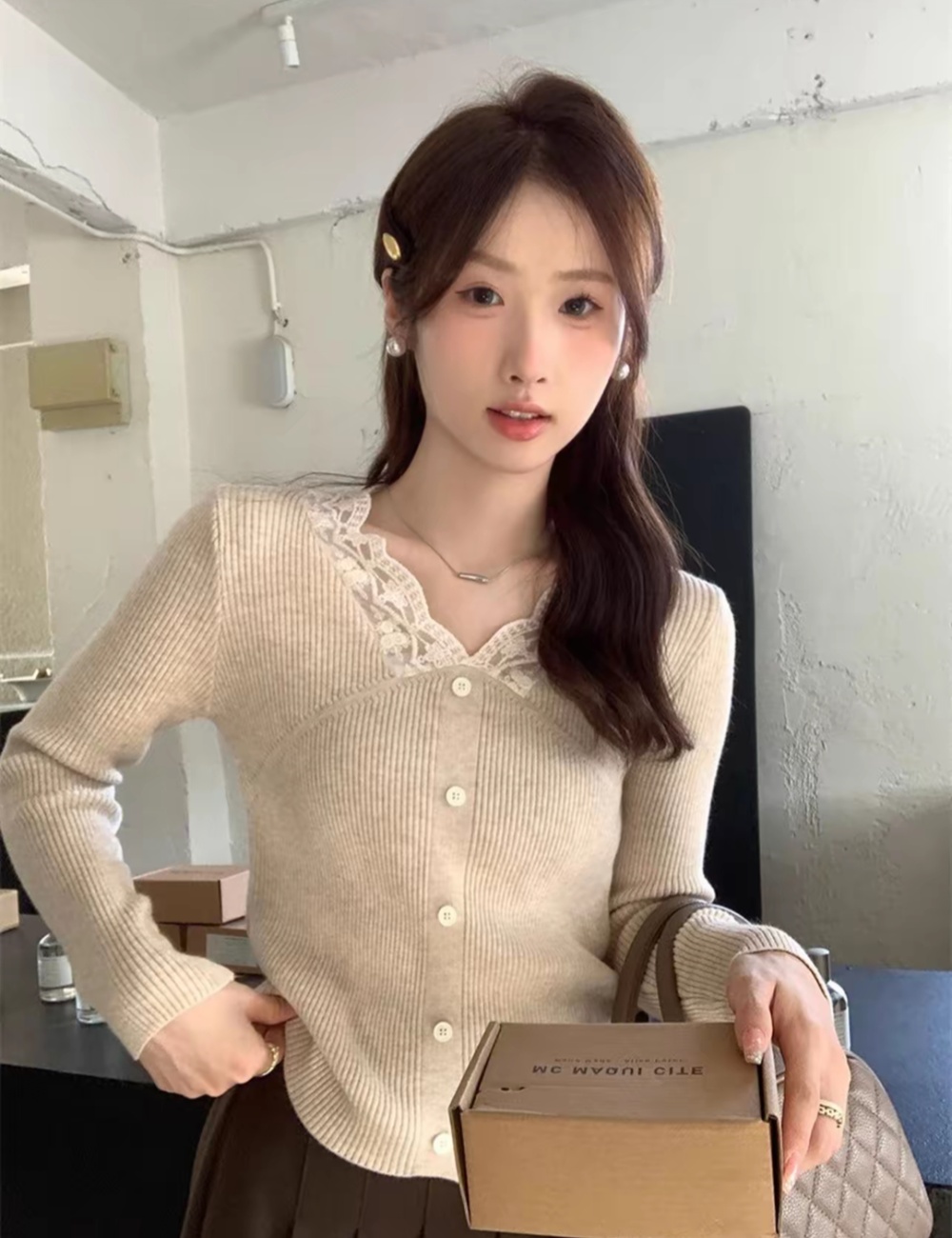 Slim France style bottoming shirt tender tops for women