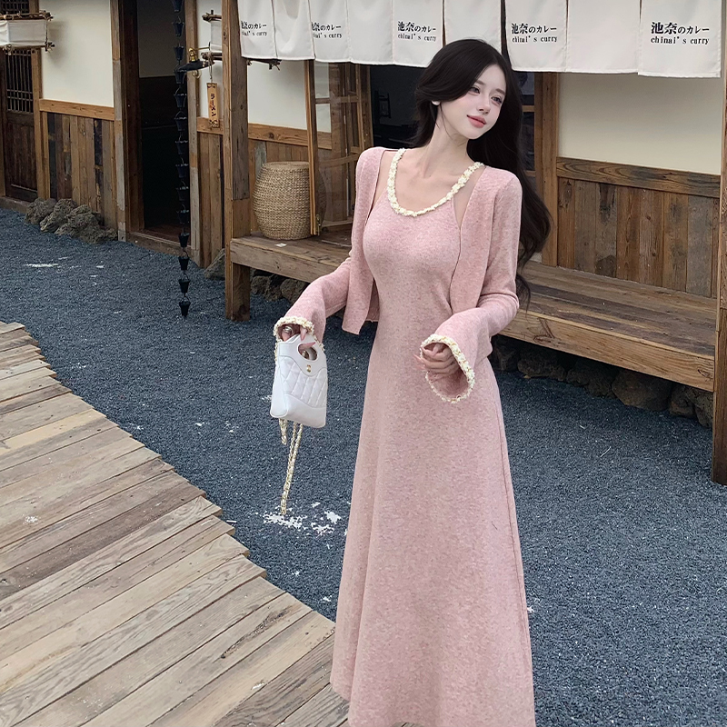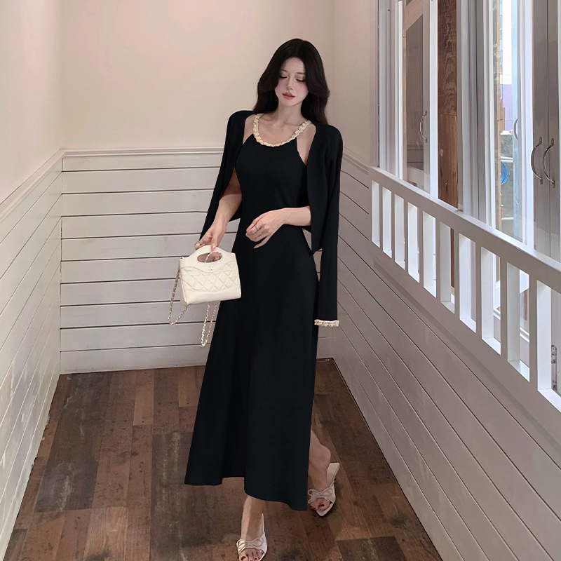 Slim enticement long dress knitted chain dress 2pcs set for women