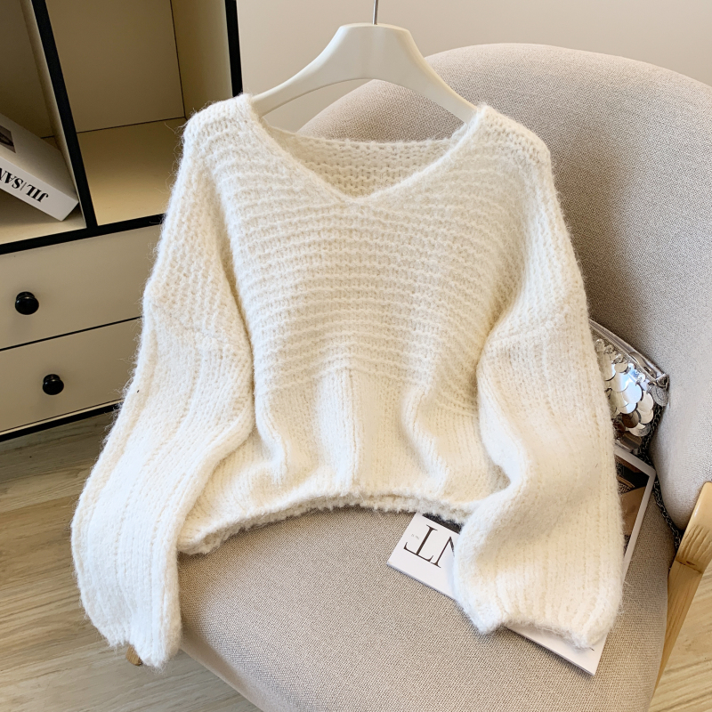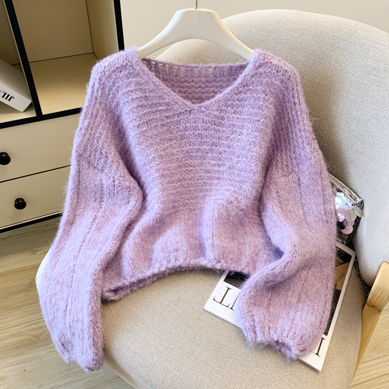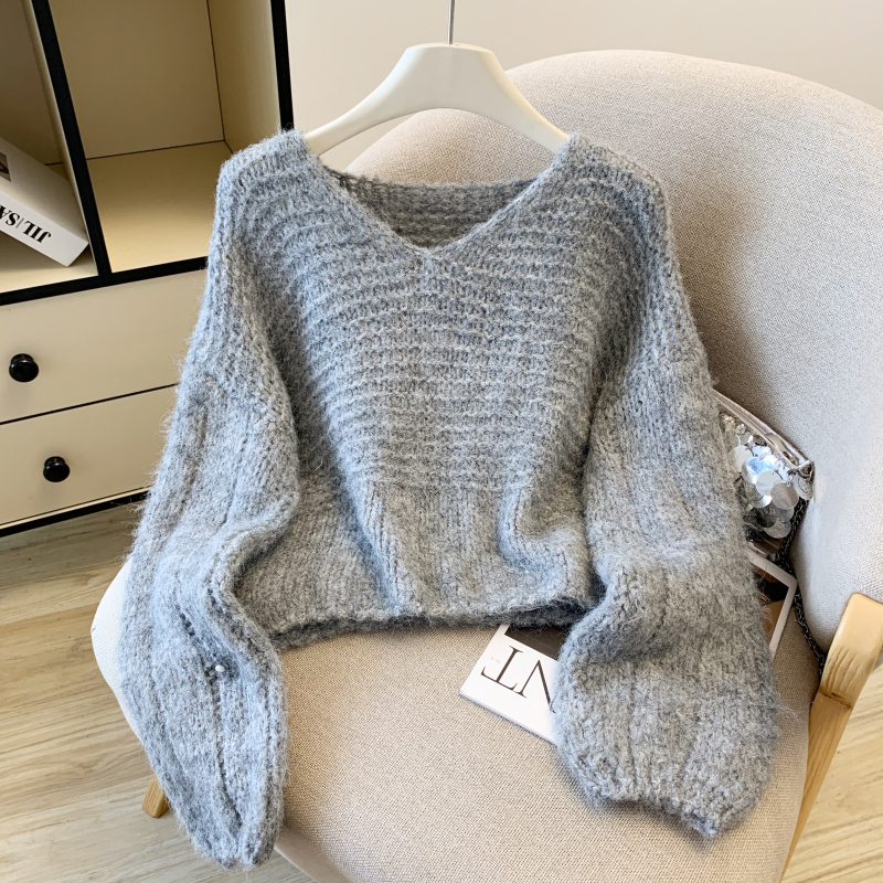 Slim loose lazy tops knitted Korean style sweater for women