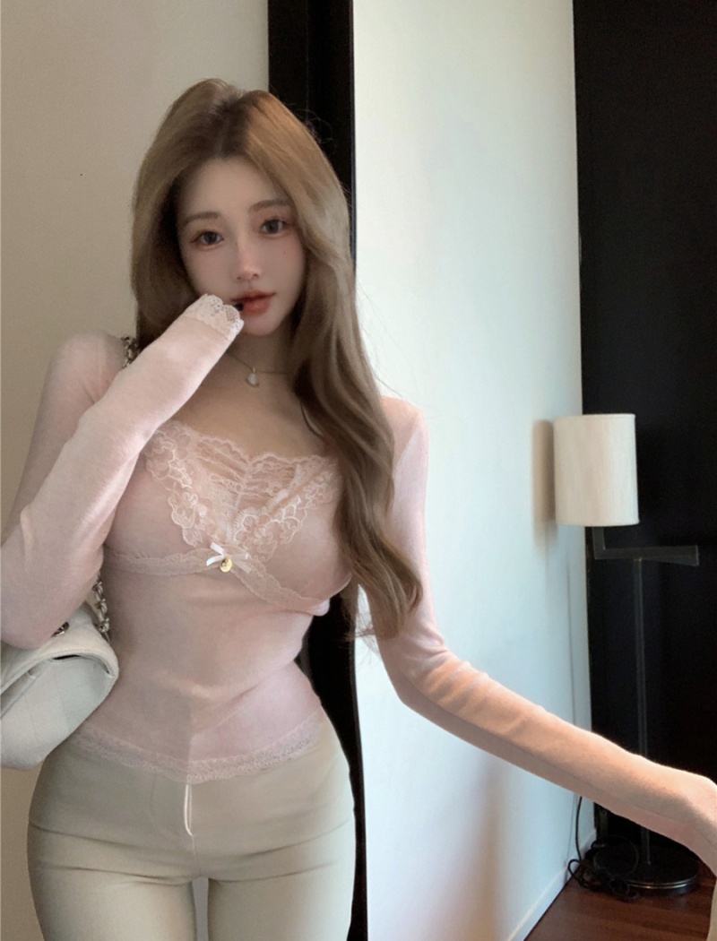 Long sleeve cartoon lovely round neck all-match T-shirt
