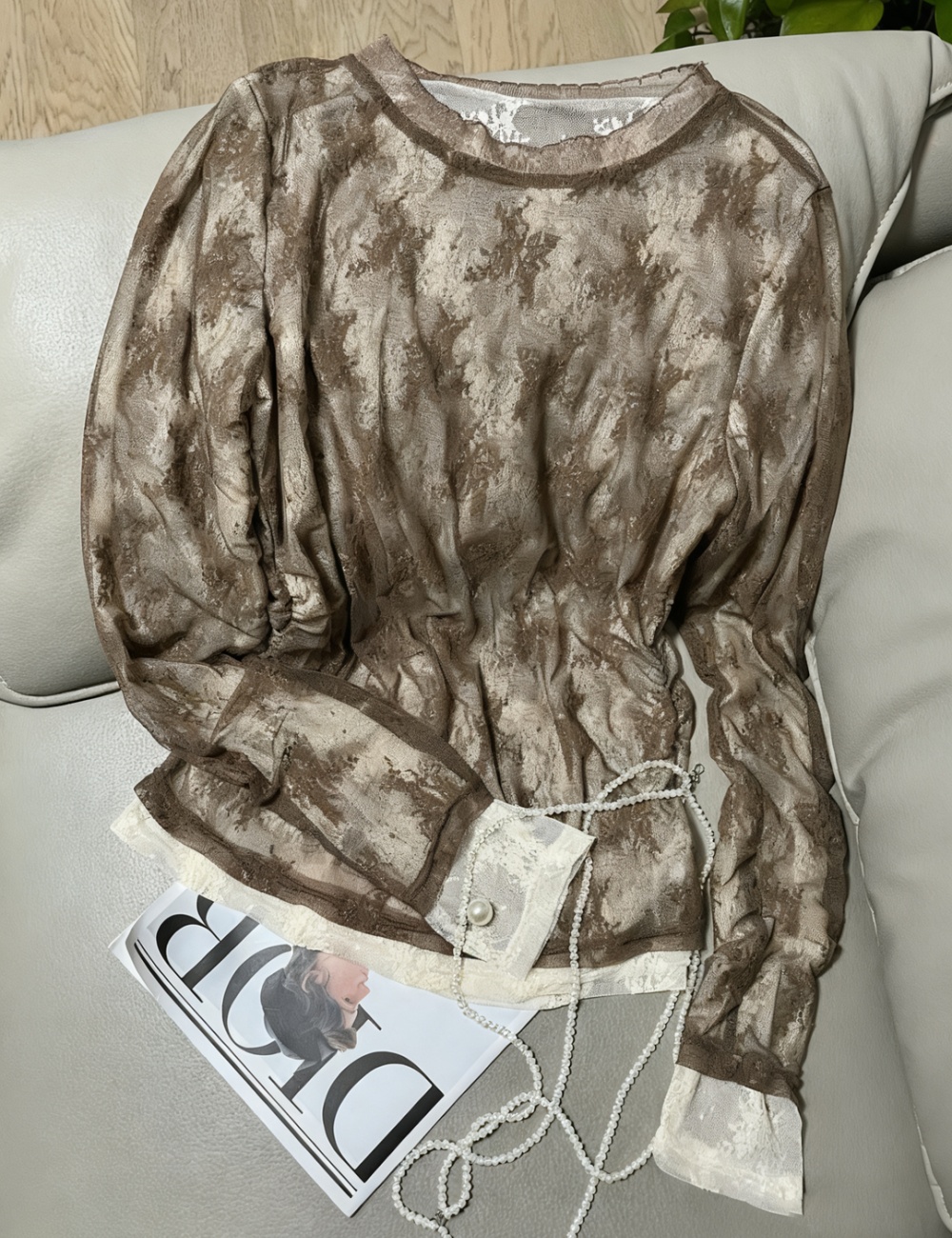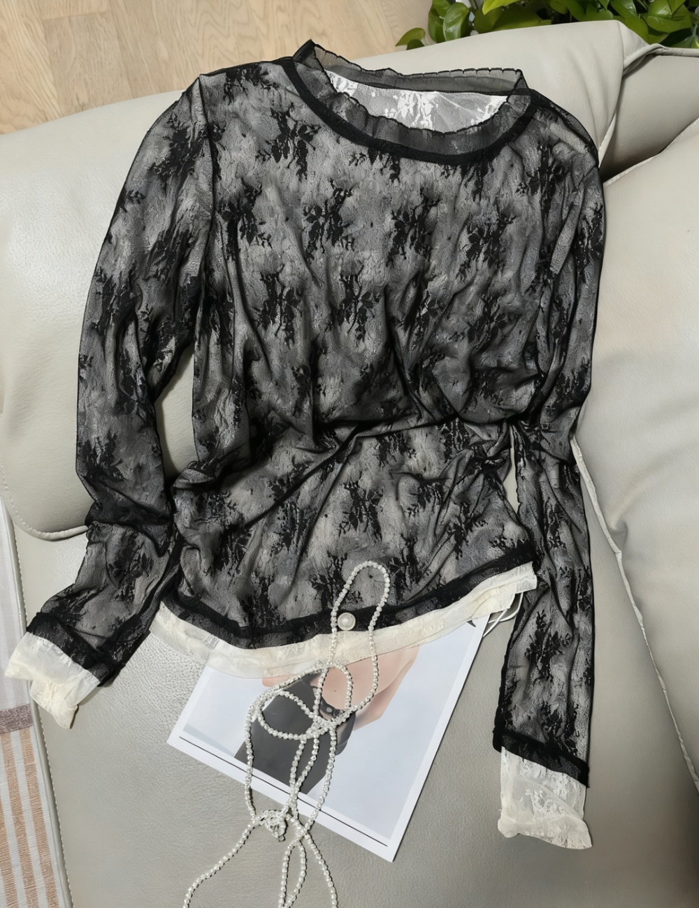 Beads autumn enticement Pseudo-two long sleeve halter tops