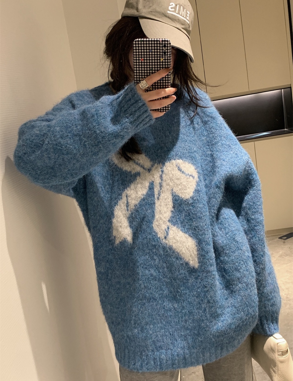 Soft blue lazy slim show young fluffy loose sweater
