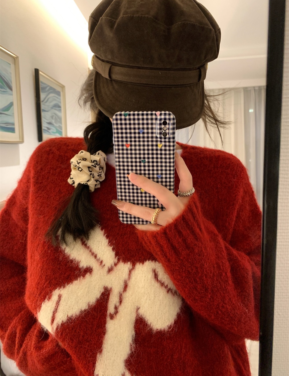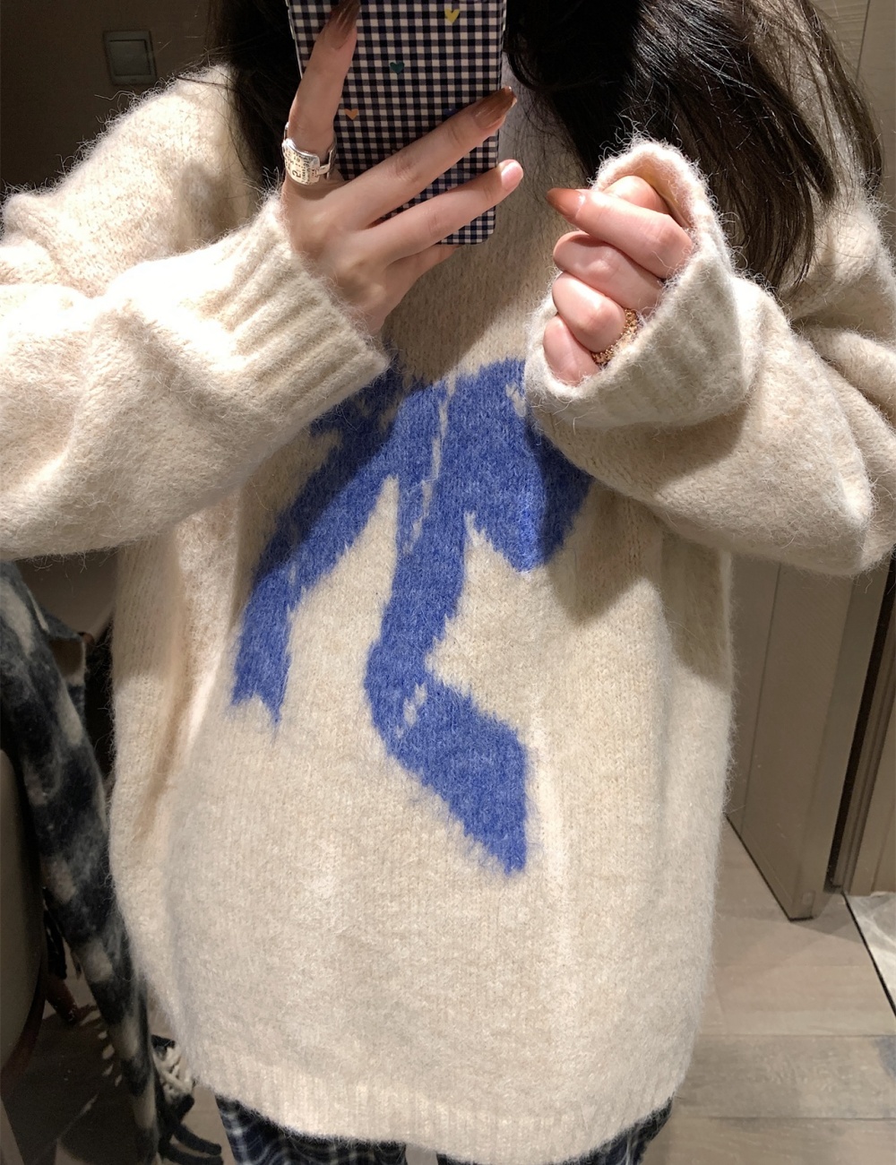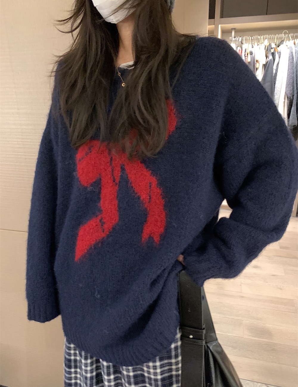 V-neck loose slim tops autumn and winter lazy sweater