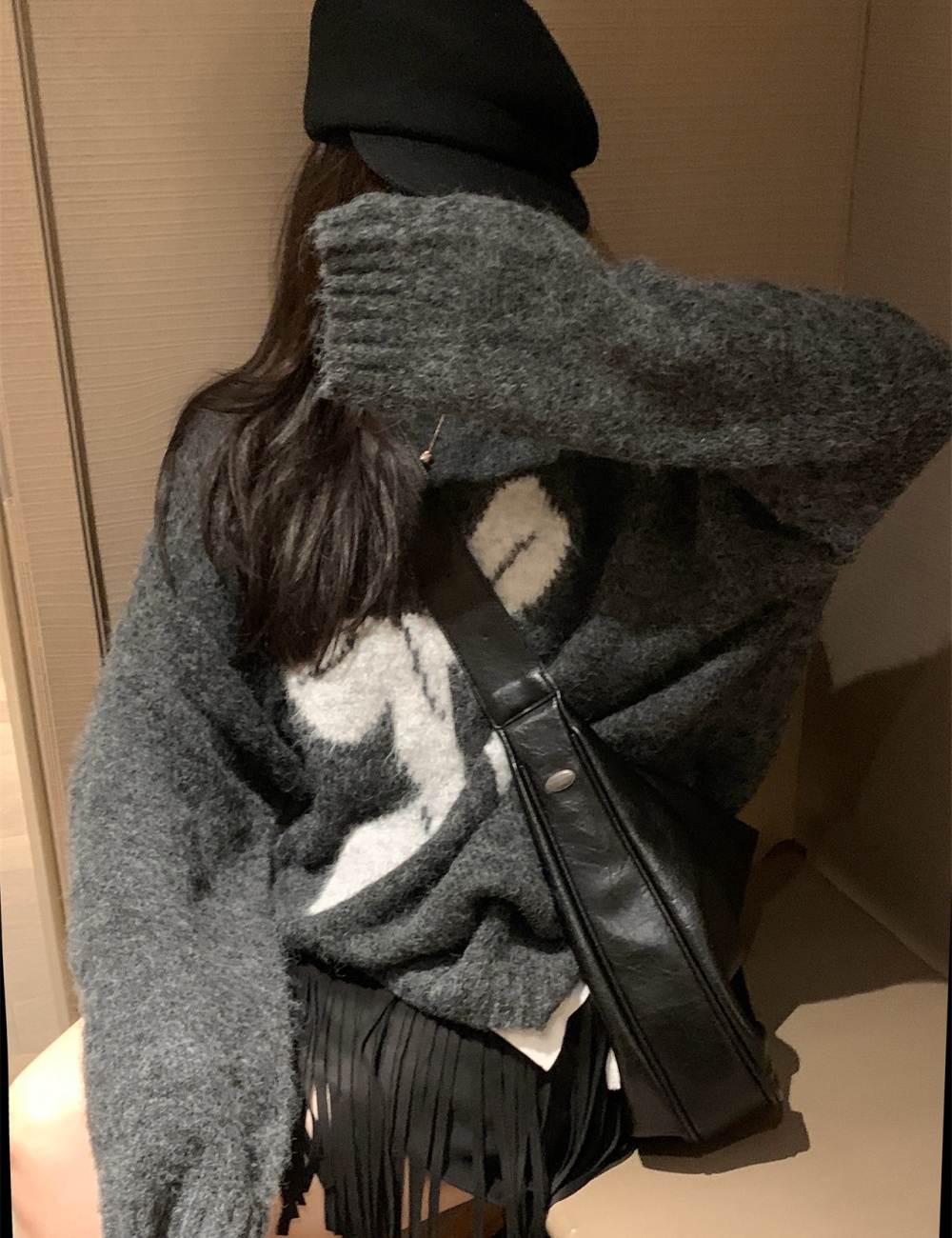 Autumn and winter gray lazy sweater for women