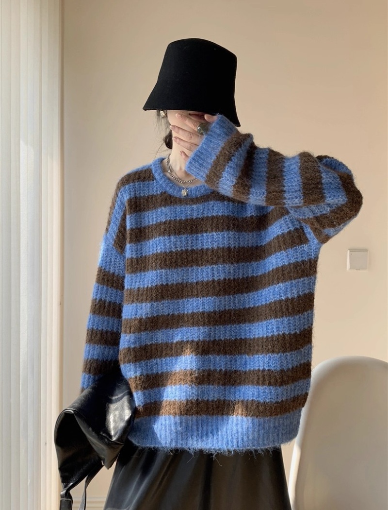 Round neck temperament stars buckle tops knitted fashion cardigan