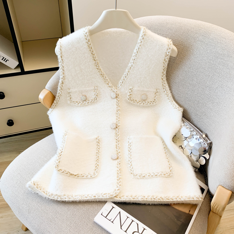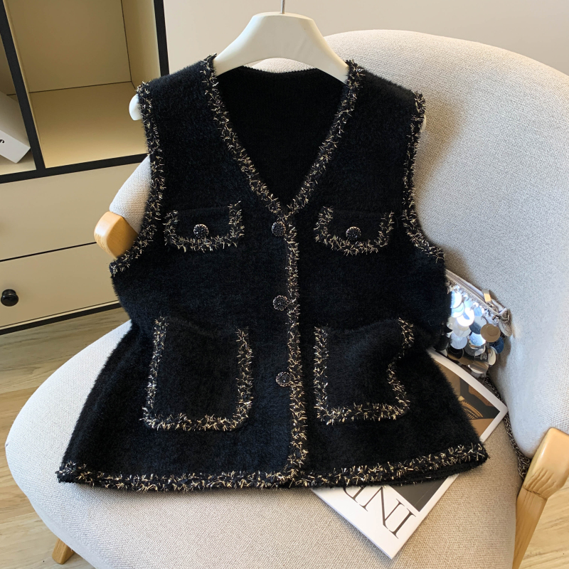 Retro knitted waistcoat round neck chanelstyle vest