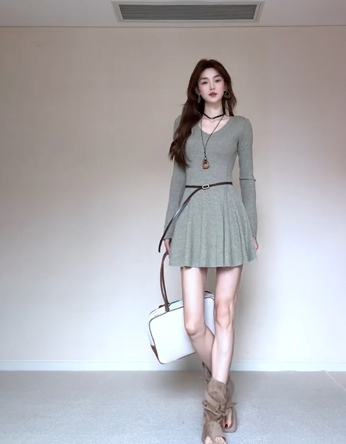 Folds low-cut wear spicegirl bottoming A-line halter dress