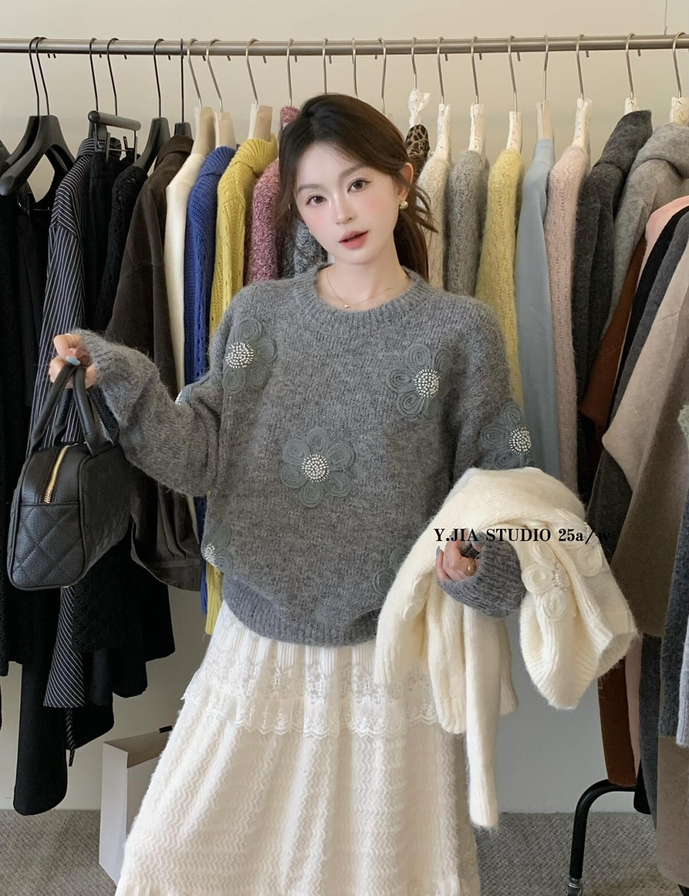 Tender temperament beading sweater
