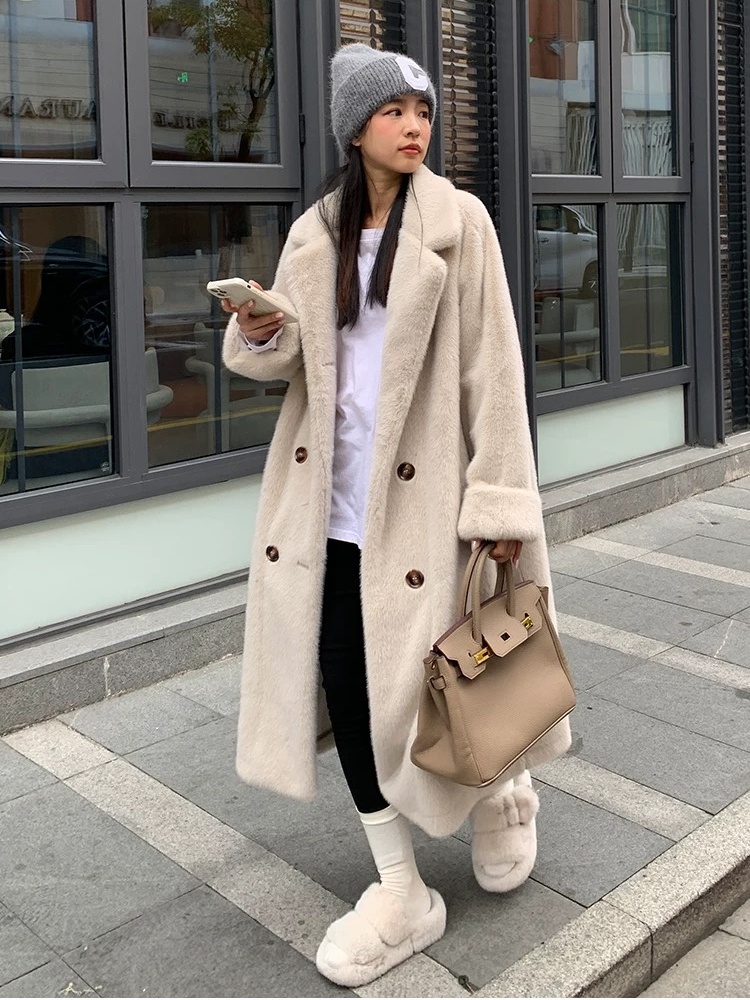 Lambs wool long coat thick fur coat
