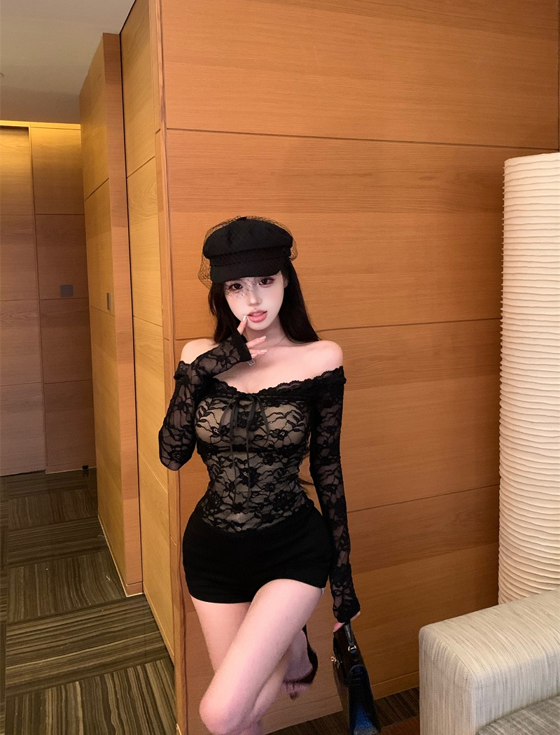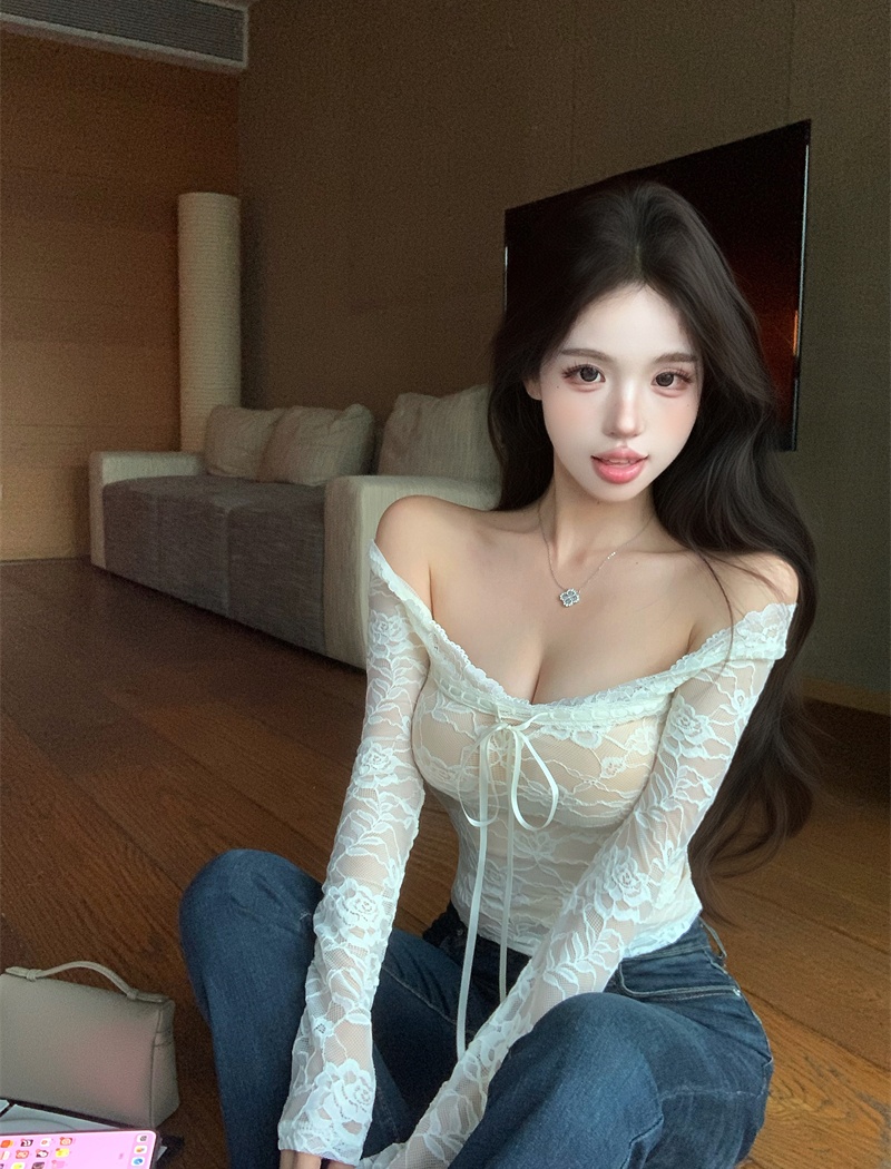 Bow lace V-neck T-shirt short enticement bottoming shirts